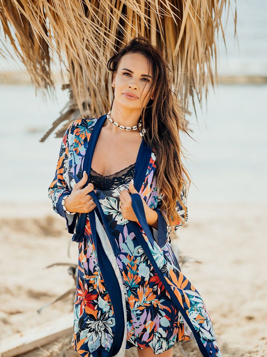 Un airy 3/4-sleeve albornoz en enérgico floral prints es el perfecto choice para those looking para un unique, femenino piece para their ropa de noche colección. El albornoz provides lightness y freedom de movement, while unñadiendo un touch de romance y elegance con its dynamic floral patterns. El albornoz was designed y sewn en Poland. Careful attention to detail y alta calidad workmanship son guaranteed, que translates en durability y cómodo llevar.