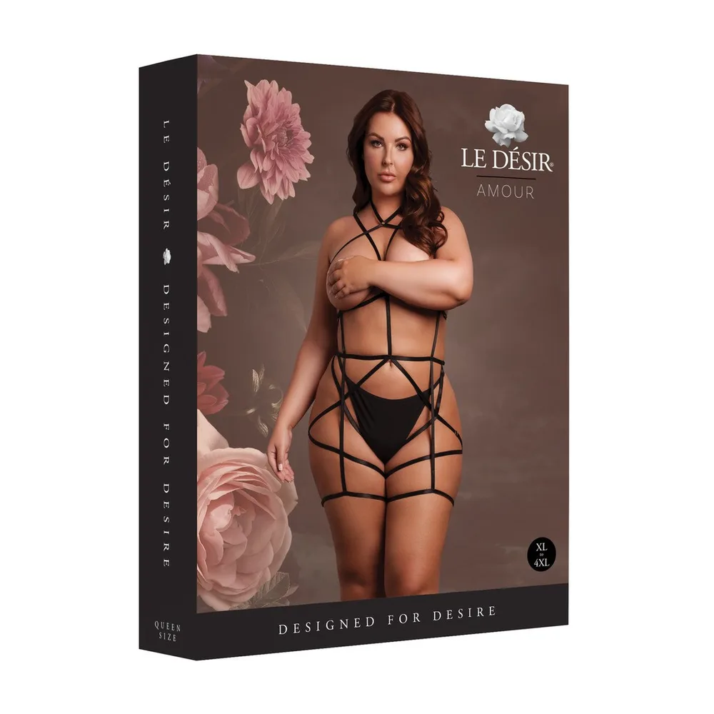 ARNÉS CORPORAL CON LIGUEROS NEGRO TALLA QUEEN LE DÉSIR