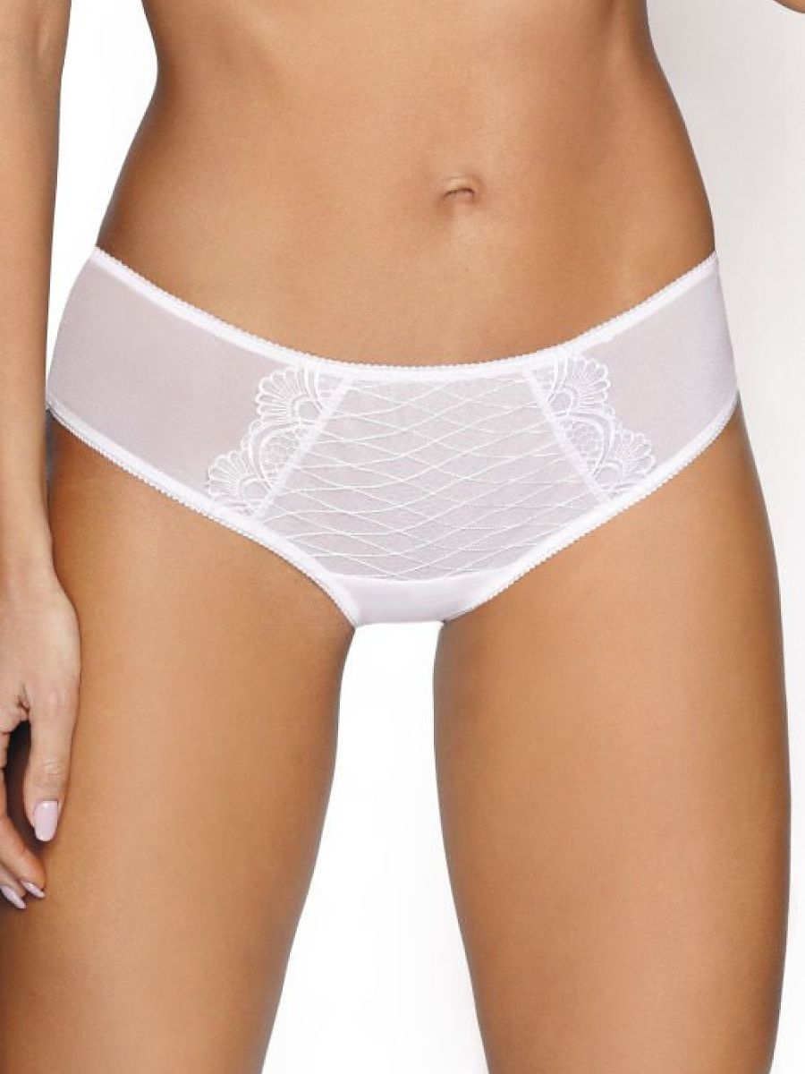 Stylish y clásico son el Jacinta braguitas. Arch delicado braguitas hecho de elastic malla, que alluringly wraps el buttocks y sides. El central part de el front es decorado con un insert de bordado. El cintura y leg lines son finished con decorative tape.