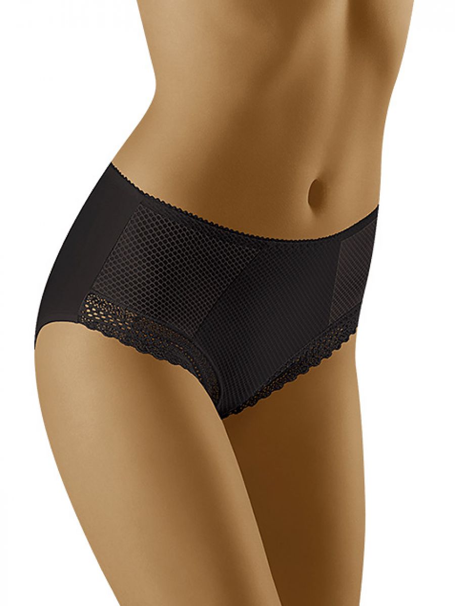 Cómodo braguitas, el front topped con calado patrón un'la cabaret. Con un smooth espalda. Clásico cut, slightly higher, slightly shapes el tummy. Surroundings de thighs nicely decorated.