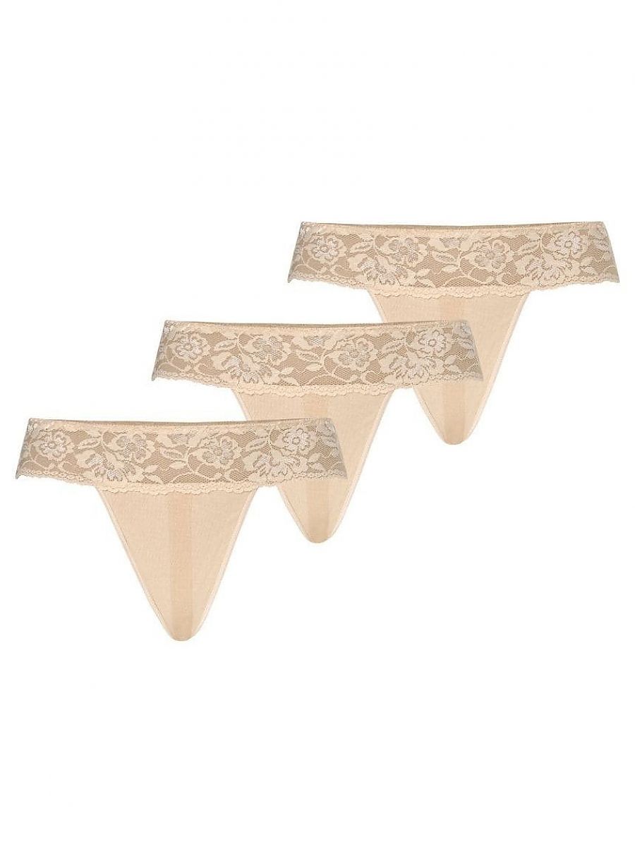 Un trio de sexy encaje tangas en natural beige color. They son hecho de elastic encaje con un striking patterned floral motif, que decorates el tanga en el ...
