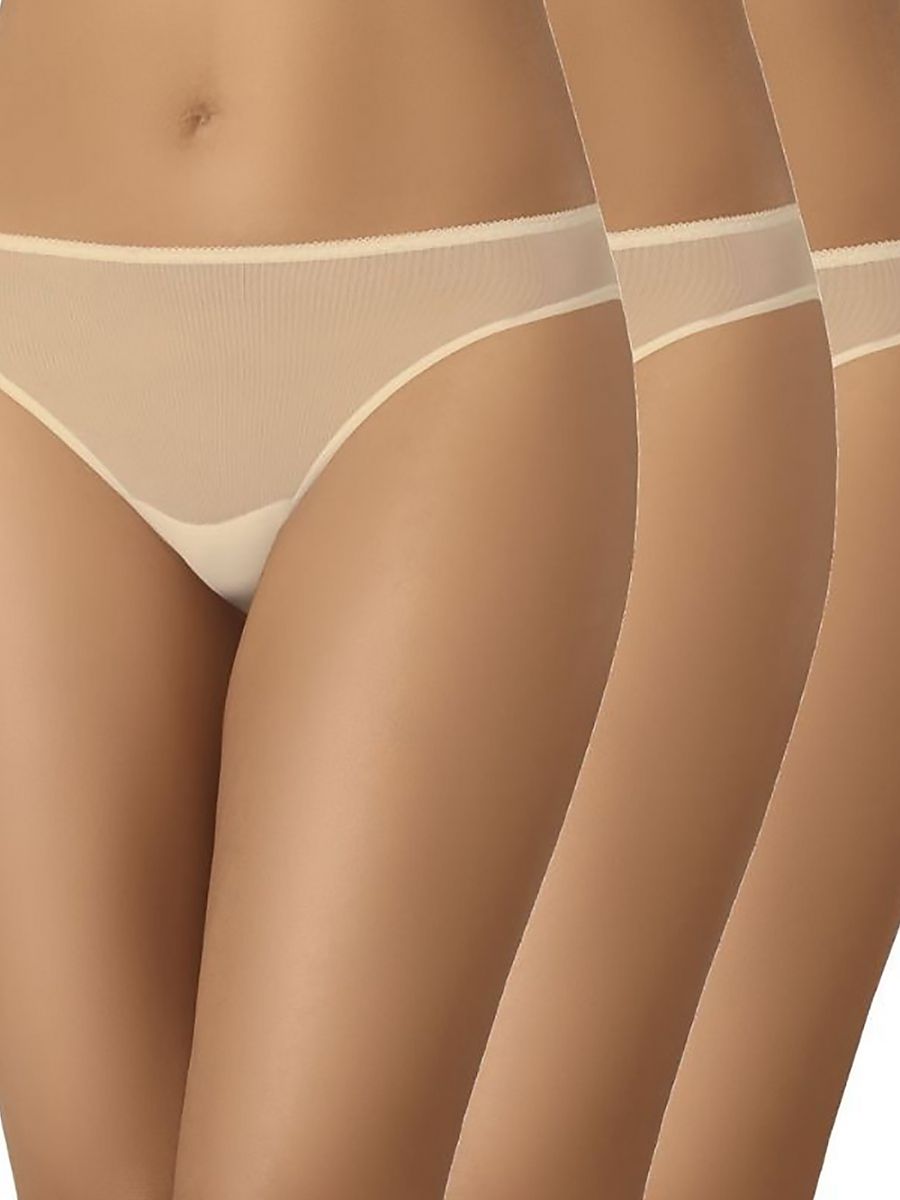 Transparente mujer's braguitas packaged en sets. El 3-pack en tallas XS to XL son popular among mujer y entice con their bajo price. Clásico en cut sin el addition de encaje, universal enfatiza femininity. Bajo-rise, cut en el front optically lengthen el legs. Around el thighs finished con thin elastic bands, que son muy flexible y do no leave marks. El beige color blends con el color de el piel y el braguitas son invisible de bajo light-colored clothing.