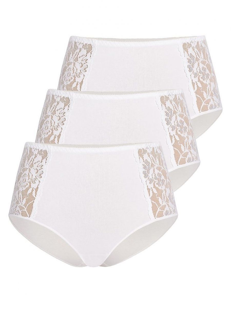Multi-pack de mujer's braguitas en blanco. El 3-pack includes alto-waisted braguitas, que hide el imperfections de el figura, y son hecho de airy suave algo...