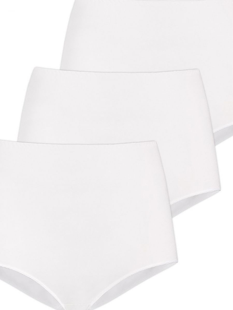 Mujer's alto-waisted bamboo braguitas en blanco. They come en un 3-pack at un lower price y son therefore eagerly purchased by female customers.