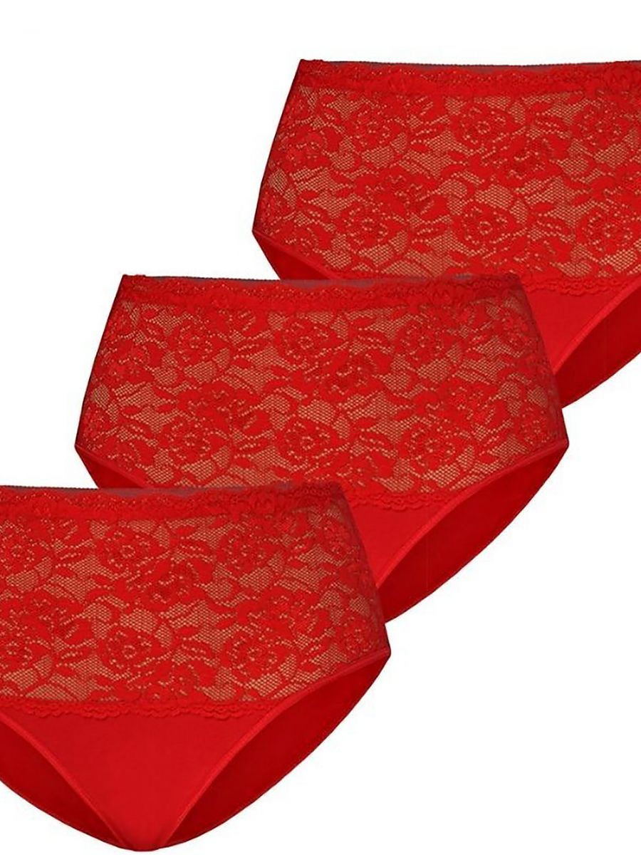 Mujer's alto-waisted braguitas en un conjunto de three. Un conjunto de algodón braguitas decorado con hermoso floral encaje en el sides.