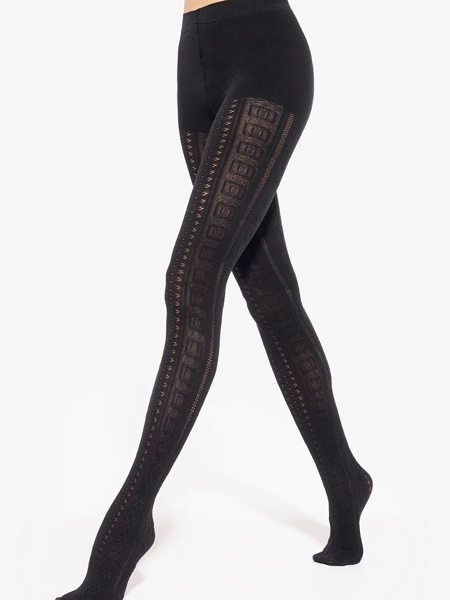 Medias Fabiane 07 en Nero color es un modelo ese combines el clásico negro con un decorative braided motif. El patrón running vertically along el legs gives...