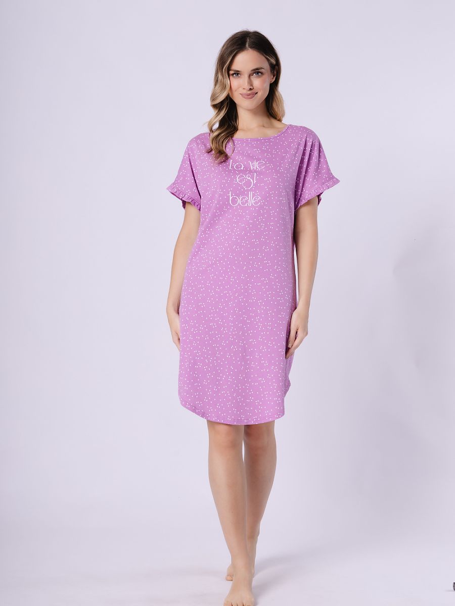Este encantador nightshirt combines comodidad con subtle style. Ello presenta un round escote y short sleeves finished con frills, que adds lightness y feme...