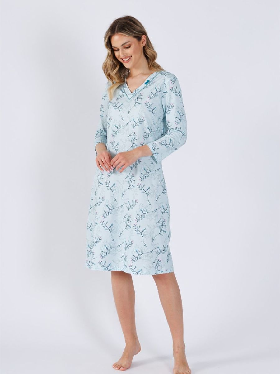 Get ready para un cómodo y stylish sleep con our nightshirt ese combines elegance con comodidad. El V-neck adds subtle charm, emphasizing el delicado line de el neck y collarbone. El loose, cómodo cut provides freedom de movement, making el shirt perfecto para nighttime relaxation. Hecho de suave y breathable printed fabric, el nightshirt es pleasant to el touch y perfectamente breathable. El decorative lazo adds un romantic touch, y el 3/4 sleeves son perfecto para cualquier season. Elegante y cómodo, este nightshirt es un perfecto choice para peaceful nights y pleasant moments de rest.