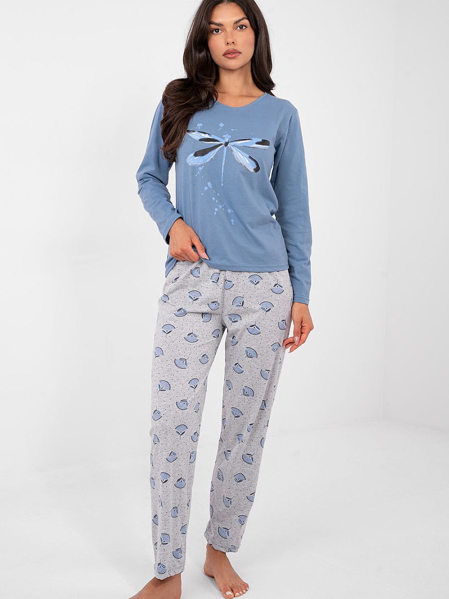 Cómodo mujer's pajamas consisting de un top y pants, designed con comodidad y diario use en mind. Hecho de alto-calidad algodón, que es suave, breathable, y piel-friendly. Ambos el pants y el front de el top son decorado con un subtle estampado, dando el whole un cohesive y femenino character. El long-sleeved top con un clásico, round escote ensures cómodo llevar. El long pants con straight legs y un alto cintura guarantee freedom de movement y perfecto ajuste. Un pocketless modelo, con un light y aesthetic form.