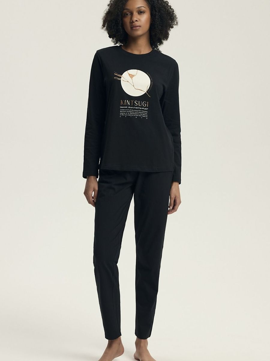 Cómodo mujer's pajamas con un clásico cut, perfecto para sleeping y relaxing at home. El long-sleeved blouse con un round escote es decorado con un slogan ese adds un moderno, femenino character to el whole conjuntos. El long pants con un wide elastic waistband guarantee comodidad y un perfecto ajuste. El conjunto es packed en un plastic bag, making ello también perfecto as un practical gift.