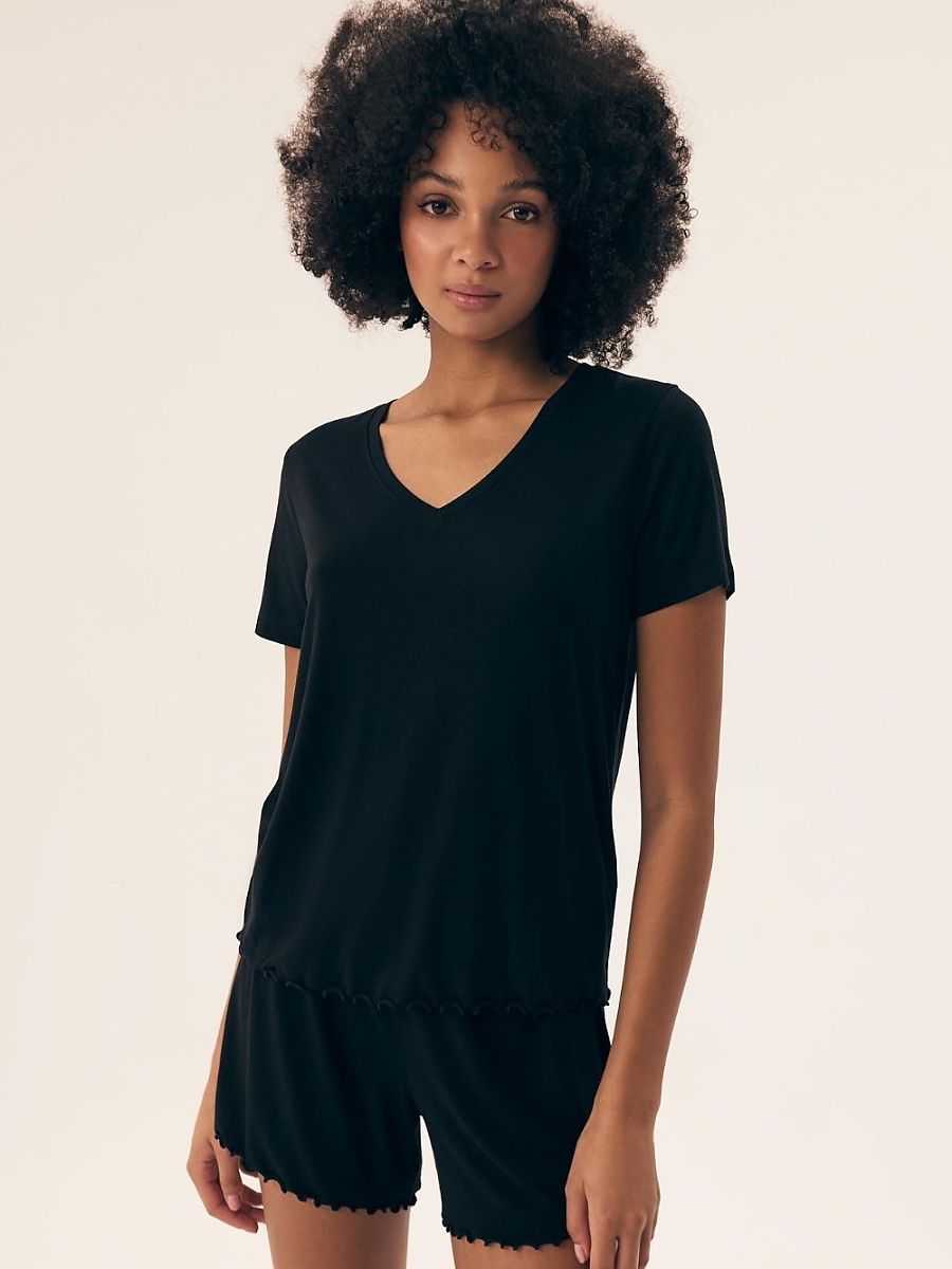Stylish mujer's pajamas, hecho de delicado viscose, proporcionando cómodo sleep throughout el night. El short-sleeved top con un V-escote, decorado con subtle encaje at el bottom, perfectamente complementa el shorts, que tiene un wide elastic waistband para incluso greater comodidad. El smooth fabric makes el pajamas pleasant to el touch, perfecto para warm nights. El product es packed en un practical plastic bag, también excellent para un gift.