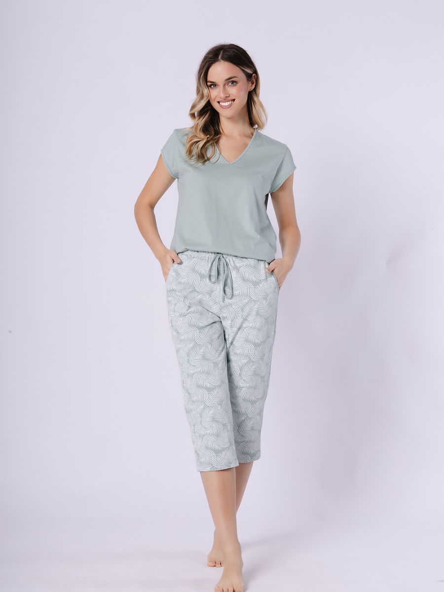 Este elegante mujer's pajamas combines comodidad con functional diseño. El short-sleeved top con un V-escote tiene practical pockets y 3/4 sleeves, ensuring...