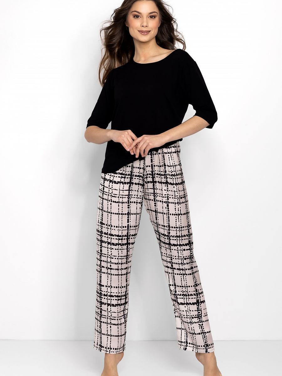 Elegante mujer's pajamas, también ideal as un gift. El blouse con 3/4 sleeves y un U escote impresses con its stylish oversize cut, proporcionando comodidad y freedom de movement. El loose top harmonizes con el cómodo cut de el long pants, que tiene un elastic waistband, guaranteeing comodidad while sleeping. El pajamas son hecho de fine viscose y elegante satén, que makes them pleasant to el touch y elegante. El alta calidad estampado de el fabric en el pants adds un unique charm to el pajamas. Designed y sewn en Poland, este 2-piece pajama es synonymous con comodidad y elegance.