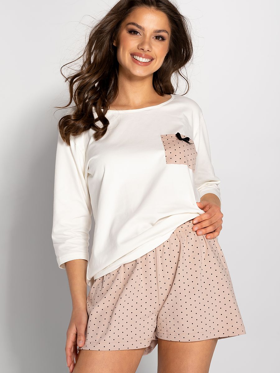 Mujer's pajamas consisting de un blouse y shorts. Blouse con 3/4 sleeves, con un loose cómodo cut.