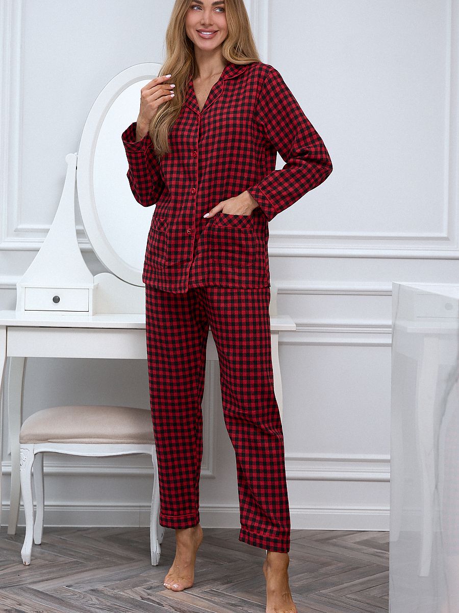 Algodón mujer's checkered X-MAS pajamas son un clásico conjunto designed para cooler evenings y cozy mornings. El bold rojo checkered patrón combined con su...