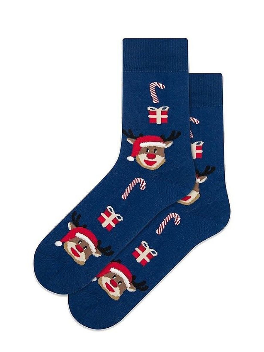 These encantador, alto socks en un holiday style combinar el joyful motif de reindeer, colorful presents, y clásico candy canes. El rich, holiday patrón cre...