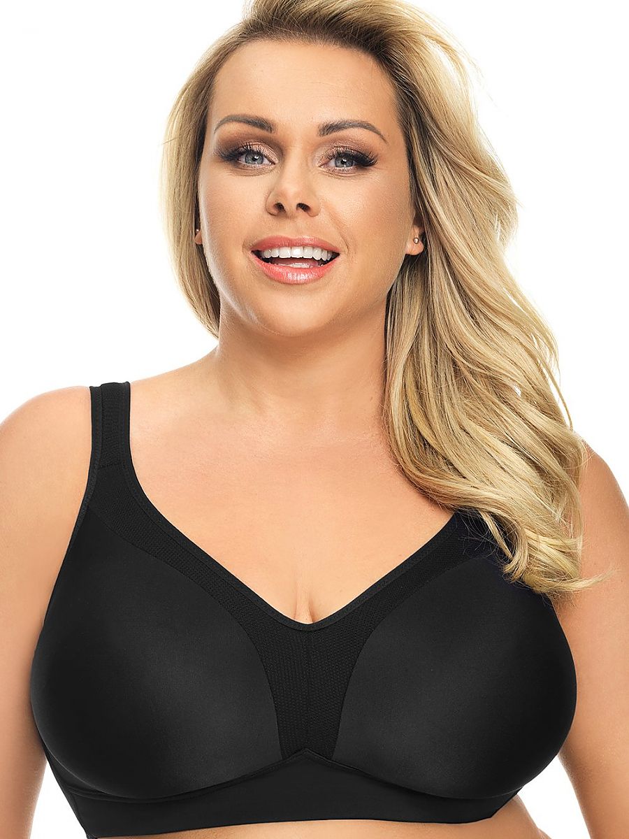 Smooth sujetador sin lower underwire, proporcionando optimal busto sujeción thanks to clever, well thought-out construction. Well-reinforced at el base, hecho de elastic fabric ese allows el piel to breathe y helps maintain el right body temperature by wicking moisture away. También suitable para sports, suave cups. Elastic underwire en el sides. Wide, ajustable tirantes.