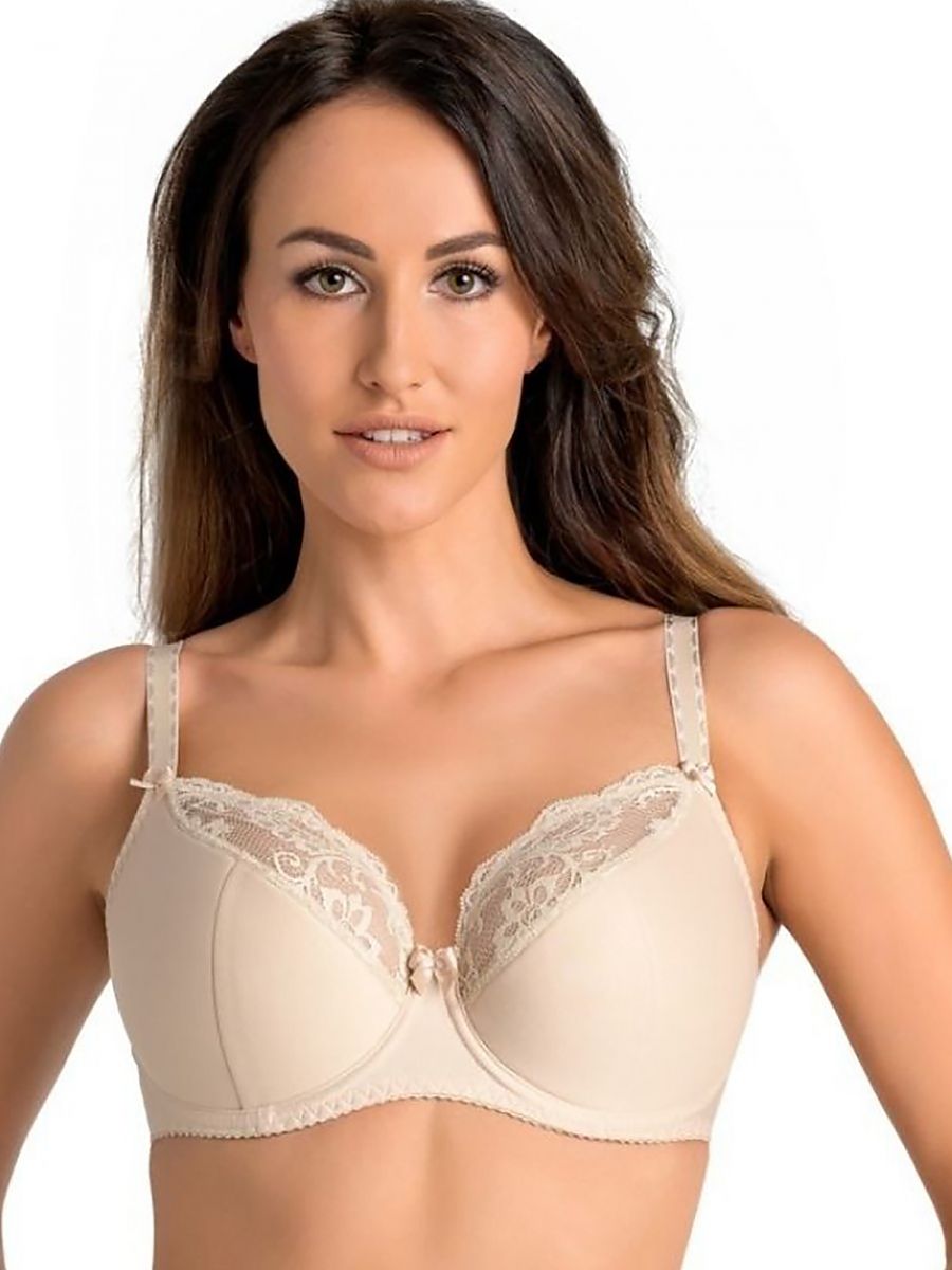 Estel semi-con relleno sujetador, beige es hecho de alta calidad algodón. Underwires sewn en el cups ensure full stability de el sujetador y perfectamente sujeción el pecho. El cups son made half de thin foam, y el top es decorado con hermoso floral encaje. Lack de side whalebones makes el sujetador muy cómodo. Vertical cuts make el busto beautifully lifted up, y horizontal cuts push ello beautifully inward. El tirantes son ajustable, decorado con girly lazos, y their width depends en el talla. Ahí son two- o three-stage gancho-y-eye closures at el espalda. En el inside, el cups son forrado con pleasant algodón, que provides maximum comodidad. El Estel sujetador es ideal para uso diario, as ello does no stand out de bajo clothing.