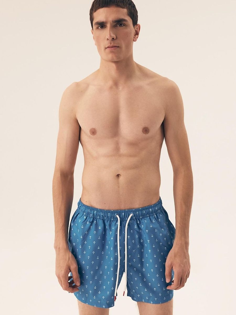 Stylish men's swim shorts hecho de lightweight material con un eye-catching estampado ese beautifully realza el tan. El modelo tiene side pockets y practica...